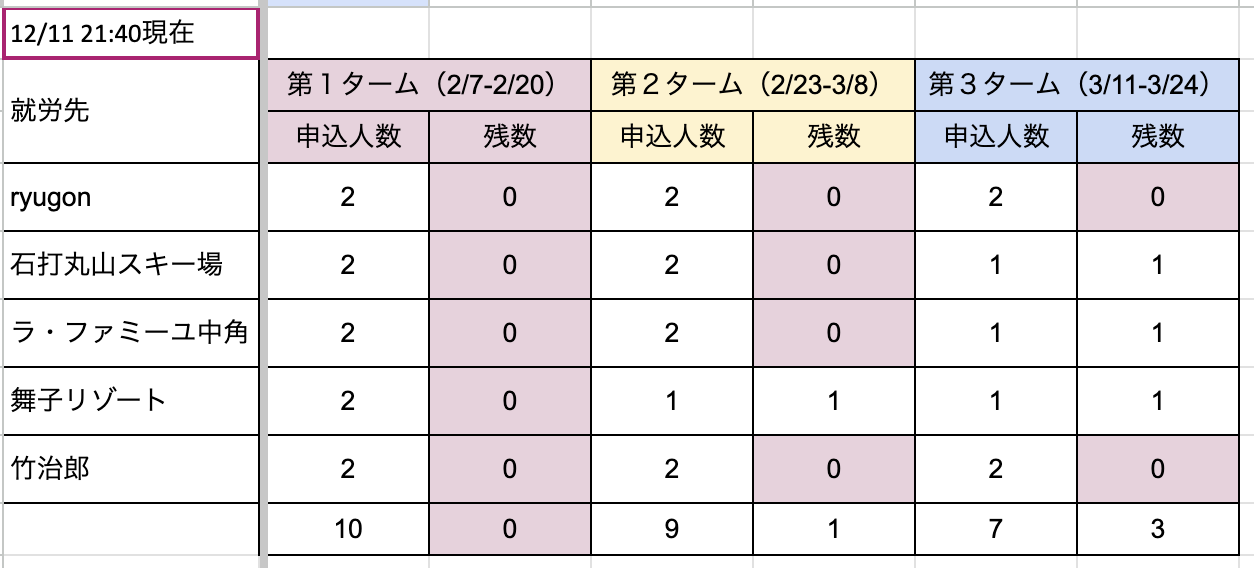 12/11現在の募集状況