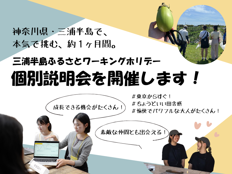 【神奈川県三浦半島】 – 人生のロールモデルに三浦半島で出会う – 個別説明会 【12/9 締切】
