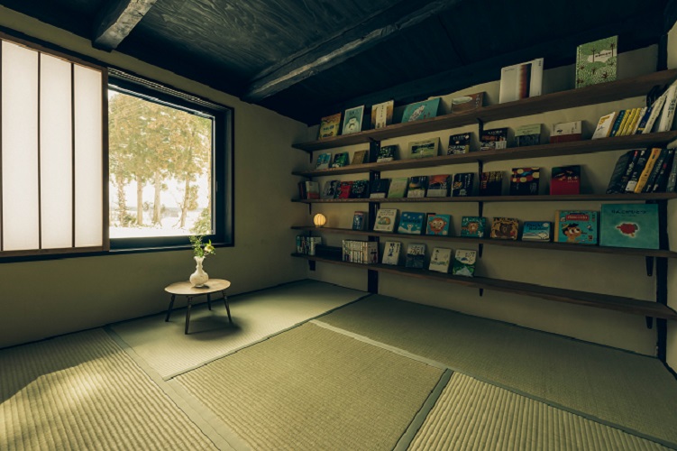 1棟貸しの宿は、最大8人が宿泊可能。図書スペースやキッチンを完備し、妙高の暮らしをゆっくりと体験することができます。