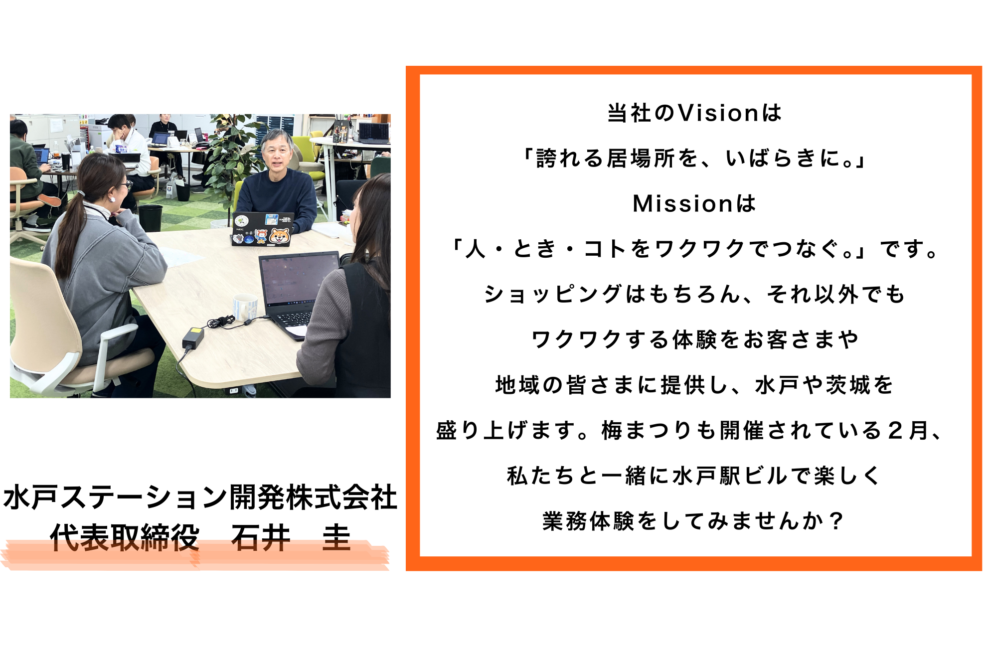 ショッピングはもちろん、それ以外でもワクワクする体験をお客さまや地域の皆さまに提供し、水戸や茨城を盛り上げます。