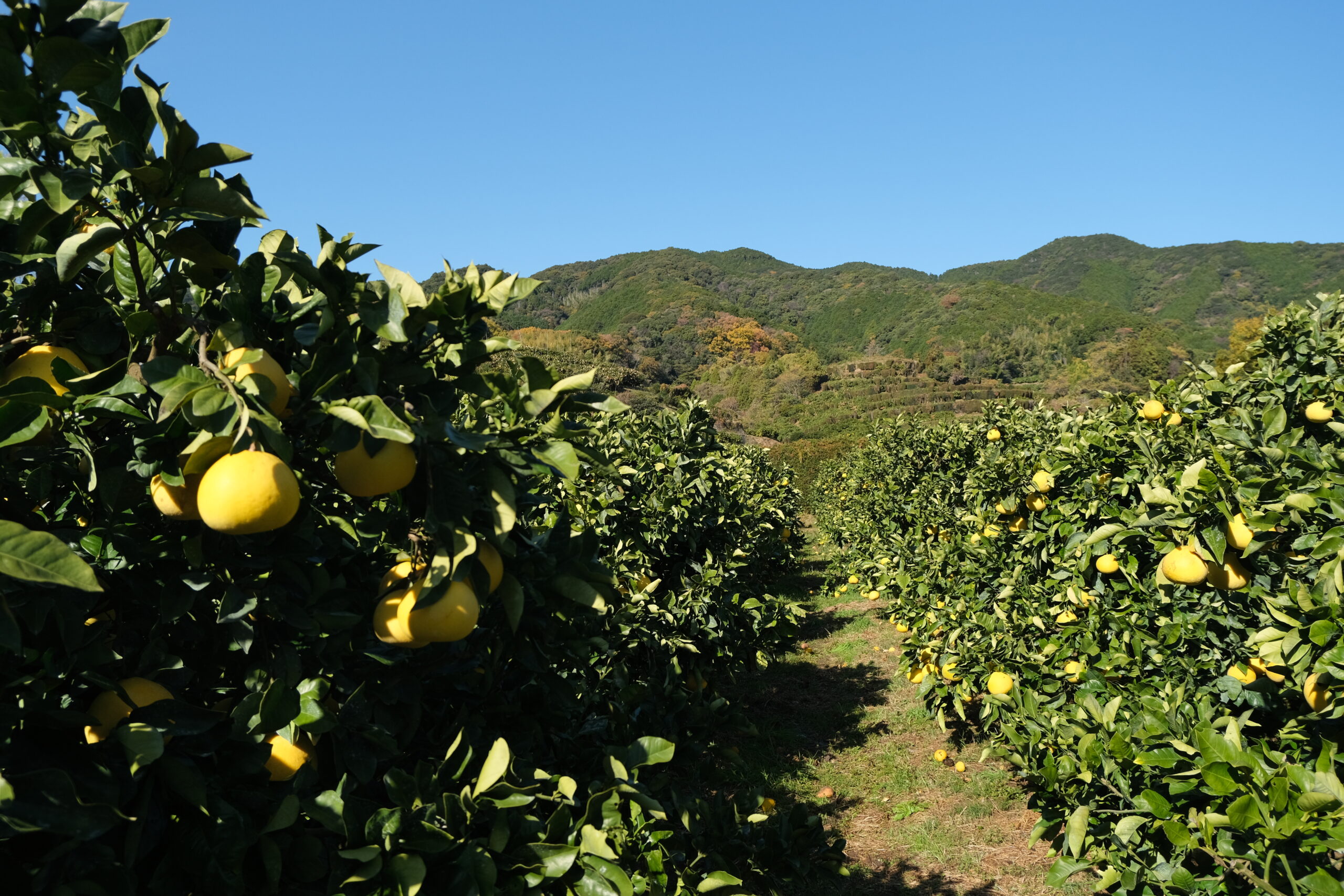 海が近く山が迫る地形は、柑橘の生育に最適な環境。 この土地だからこそ生まれる、小夏の“やさしい酸味”や文旦の“香り高さ”が魅力です。